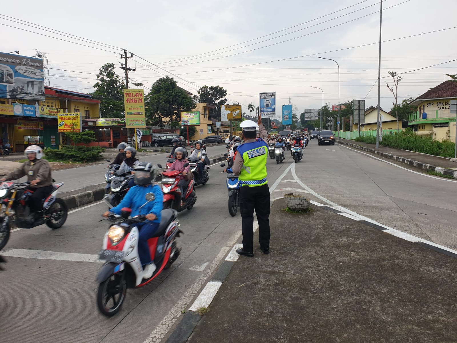 Terlihat petugas juga melakukan rekayasa arus secara situasional guna mencegah terjadinya kemacetan dan potensi kecelakaan. Selain itu, personel juga memberikan imbauan kepada pengguna jalan agar tetap tertib berlalu lintas, menjaga jarak aman, dan mematuhi arahan petugas di lapangan.