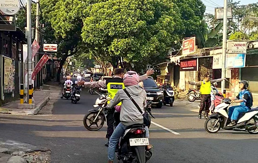 Polres Salatiga Polda Jateng – Dalam rangka memberikan pelayanan kepada masyarakat di pagi hari, personel Polsek Sidomukti Polres Salatiga Polda Jawa Tengah rutin melaksanakan PH pagi, seperti terlihat saat Aiptu Tambah S.H., dan Bripka Dimas Yoga melakukan pengaturan arus lalu lintas dan membantu penyeberangan masyarakat di Perempatan Jalan Bisma Kota Salatiga, Selasa (07/10/2025)