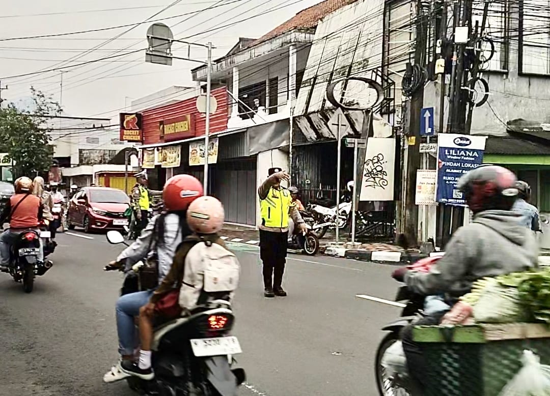 Polres Salatiga Polda Jateng – Dalam rangka memberikan pelayanan kepada masyarakat di pagi hari, personel Polsek Sidomukti Polres Salatiga Polda Jawa Tengah rutin melaksanakan PH pagi, seperti terlihat saat Ipda Yulis Setiawan dan Aiptu Irmadi melakukan pengaturan arus lalu lintas dan membantu penyeberangan masyarakat di Pertigaan Wonder, Selasa (30/09/2025)