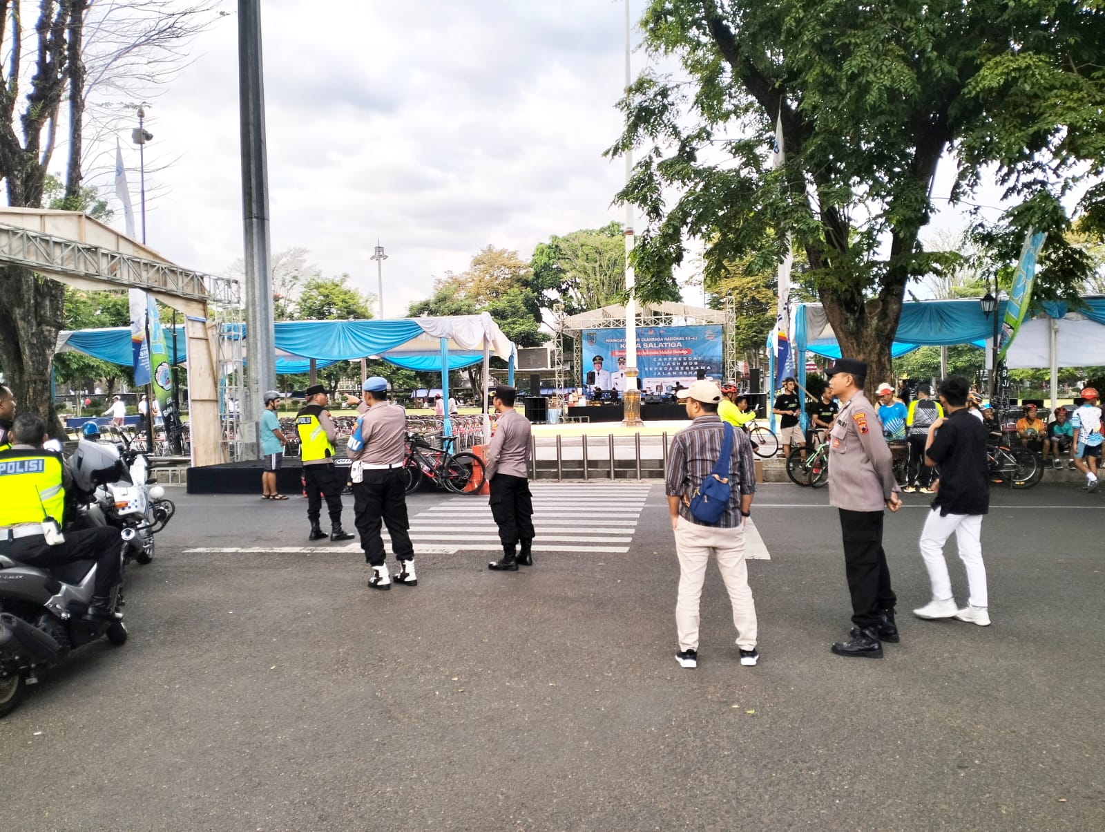 Polres Salatiga Polda Jateng – Dalam rangka memberikan rasa aman dan nyaman serta menjaga situasi aman kondusif wilayah Kota Salatiga, Kapolsek Sidomukti Kompol Sunoto, S.H., bersama anggota melakukan pengamanan Car Free Day, Jalan Sehat, Sepeda Sehat dan Flash Mob dalam rangka Peringatan Hari Olahraga Nasional (HAORNAS) Tahun 2025 di Alun Alun Salatiga, Sabtu (27/09/2025).